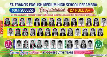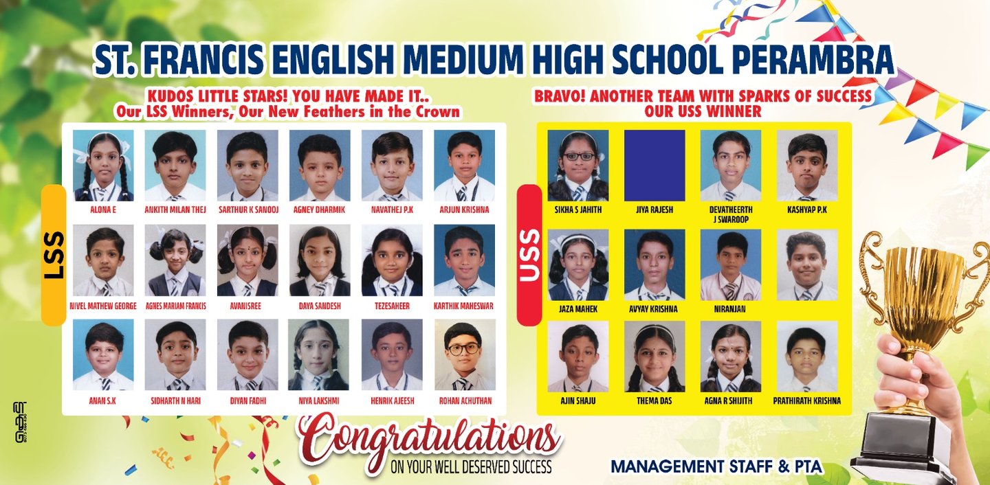 At St. Francis English Medium High School, Perambra, our students continue to make us proud with their remarkable achievements in academics, cultural events, sports, and competitive exams. Their dedication, hard work, and talent reflect the school's commitment to excellence.
