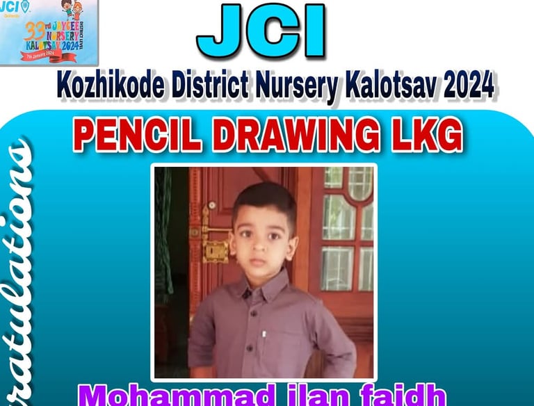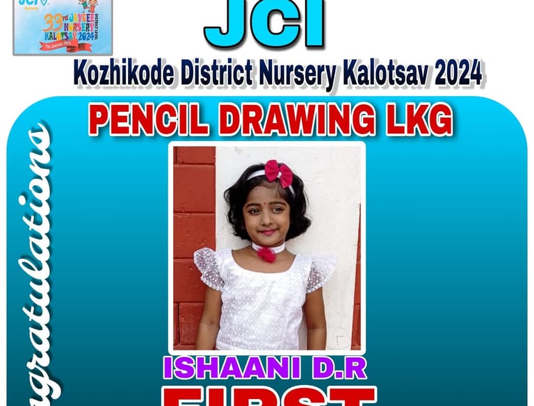 JCI Conducted Kozhikode District Nursery Kalolsav 2024 - Pencil Drawing Competition - LKG Section - First Prize Ishaani D.R